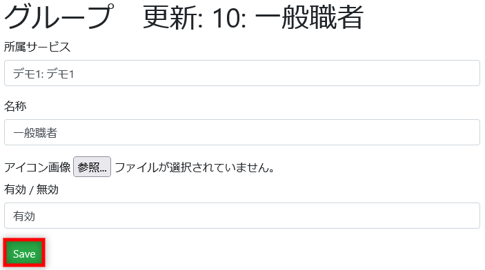 編集したい項目を変更し[Save]ボタンをクリックして変更を保存します。