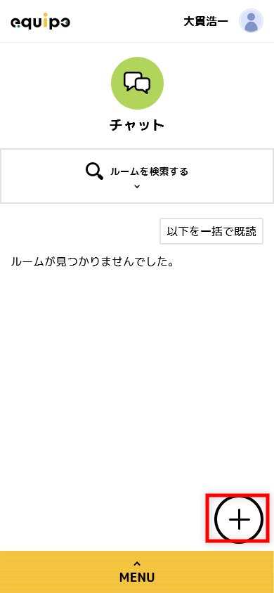 [グループチャット配信権限]または[個別チャット配信権限]を付与されているスタッフは、画面下部に[+]ボタンが表示されます。