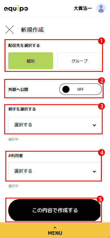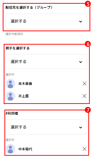 チェックをONにすると、配信先の相手として外部ユーザーを選択できるようになります。