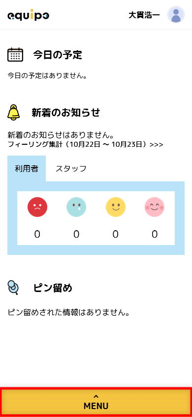画面下部の[MENU]をタップします。