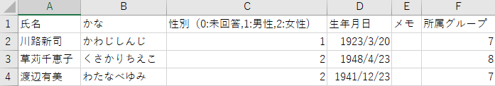 [所属グループ]は半角カンマ区切りで複数指定できます。