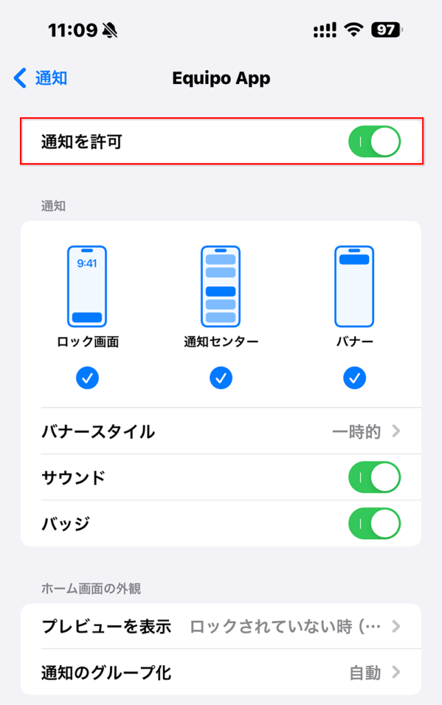 アプリ通知を有効にするには設定アプリから設定を行ってください。