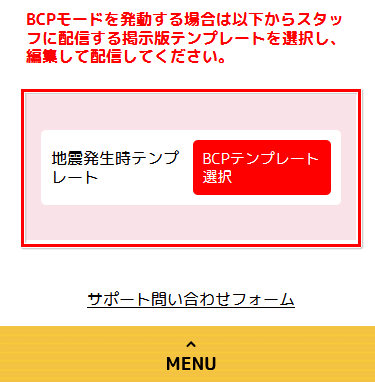 BCPの発動は、[BCP掲示版 配信権限]を与えられたスタッフのみが行えます。
